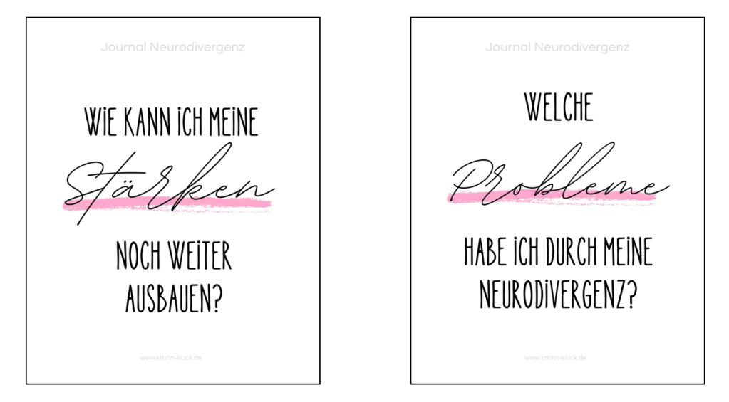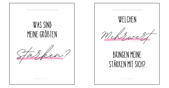 Heute geht es weiter mit den nächsten beiden Wochenfragen aus meinem Arbeitsbuch “Neurodivergenz als deine Stärke.”, die dir dabei helfen können, zukünftig bewusster mit deiner Neurodivergenz umzugehen: