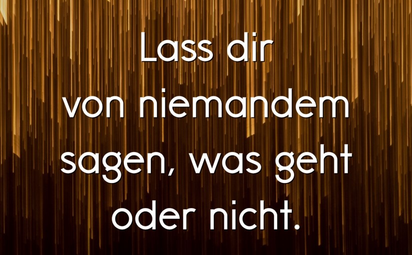In meinen 15 Jahren Selbstständigkeit habe ich gelernt, dass es zwar durchaus förderlich sein kann, sich mit anderen Menschen über seine eigenen Gedanken und Ideen auszutauschen. Jedoch darf ich selbst immer noch darüber entscheiden, ob ich die Gedanken meines Gegenübers auch annehme.