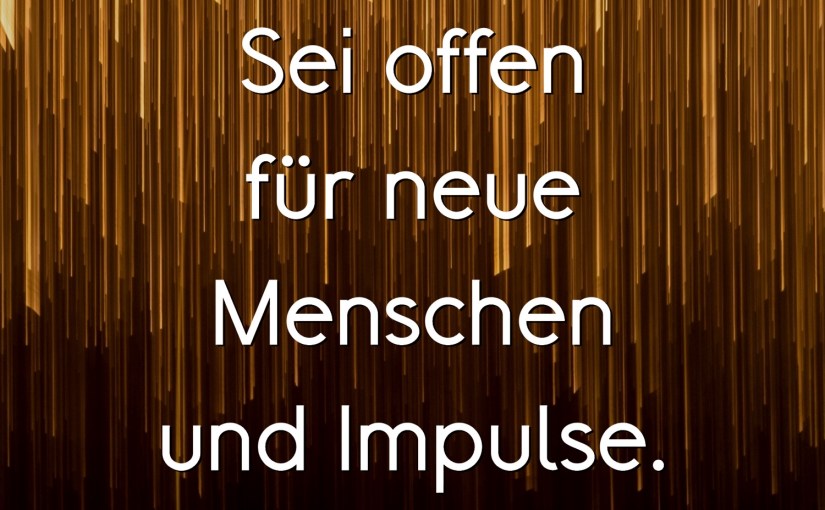 Ich kann dich deshalb nur dazu ermutigen, immer wieder offen zu sein für neue Menschen und Impulse. Neugierig auf neue Begegnungen und Gespräche zu sein. Und schau, was sie mit dir machen. Welche Denkmuster sie durchbrechen. Welche Fragen sie aufwerfen. Und welche neuen Sichtweisen und Wege sich dadurch für dich eröffnen.